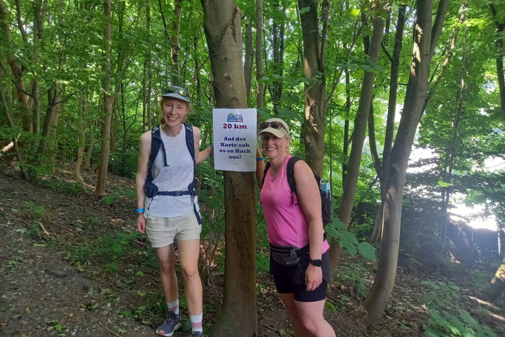 Am 14. Juni 2025 machten sich Judith und Friederike auf den Weg nach Breckerfeld Ecklöh, um sich dort einer ganz besonderen Herausforderung zu stellen, dem „Unsichtbar-Marsch“. Angekündigt mit einer 40 km Strecke und 1000 Höhenmetern, war es ein Event, das „Hiking Helden“ alias Marc Katzer gemeinsam mit Mike Vormann auf die Beine gestellt hatten. Ein Marsch für den guten Zweck, den „Unsichtbar e.V.“, der sich in Hagen um Obdachlose kümmert, insbesondere nachts, wenn es oft an Versorgung wie warmer Kleidung oder Getränken bei Extrem-Temperaturen oder widrigen Wetterbedingungen mangelt.