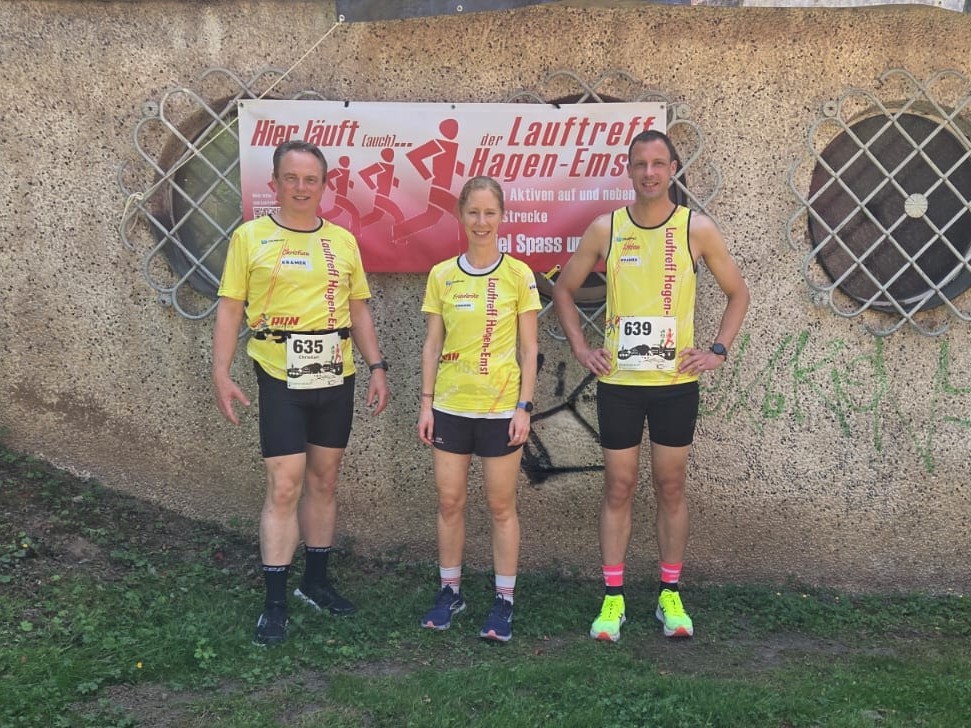 Beim 10,8 km Lauf waren im Feld der 58 Teilnehmenden Friederike, Stephan und Christian vom Lauftreff Hagen-Emst vertreten. In ihren Altersklassen erzielten sie die folgenden Platzierungen: Stefan 3. AK M40 (47:15 Min.), Friederike 1. AK W50 (57:10 Min.), Christian 2. AK M55 (57:35 Min.). Herzlichen Glückwunsch!