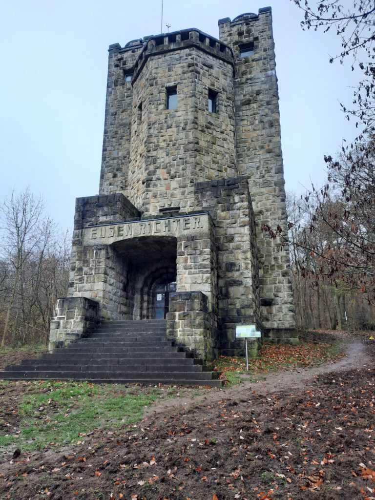 Nach dem Start erreicht man als erstes den Kaiser-Friedrich-Turm, hinter dem der erste Single-Trail beragab führt. Weiter geht es zum Bismarckturm. Am Eugen-Richter-Turm, dem wohl anspruchsvollsten Abschnitt der Strecke, wurden wir von unserer Fangruppe (es konnten nicht alle Lauftreffler mitlaufen) angefeuert. Danke, dass ihr uns damit für die letzten 2 km des Trails nochmal gepusht habt!