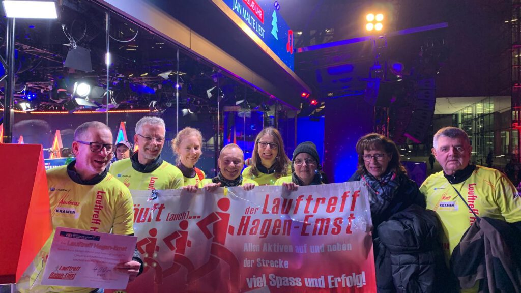 Stellvertretend für alle Lauftreffler hat sich eine Gruppe am 16. Dezember 2025 auf den Weg nach Essen zum gläsernen Studio des WDR gemacht und unsere Spende vor Ort übergeben.